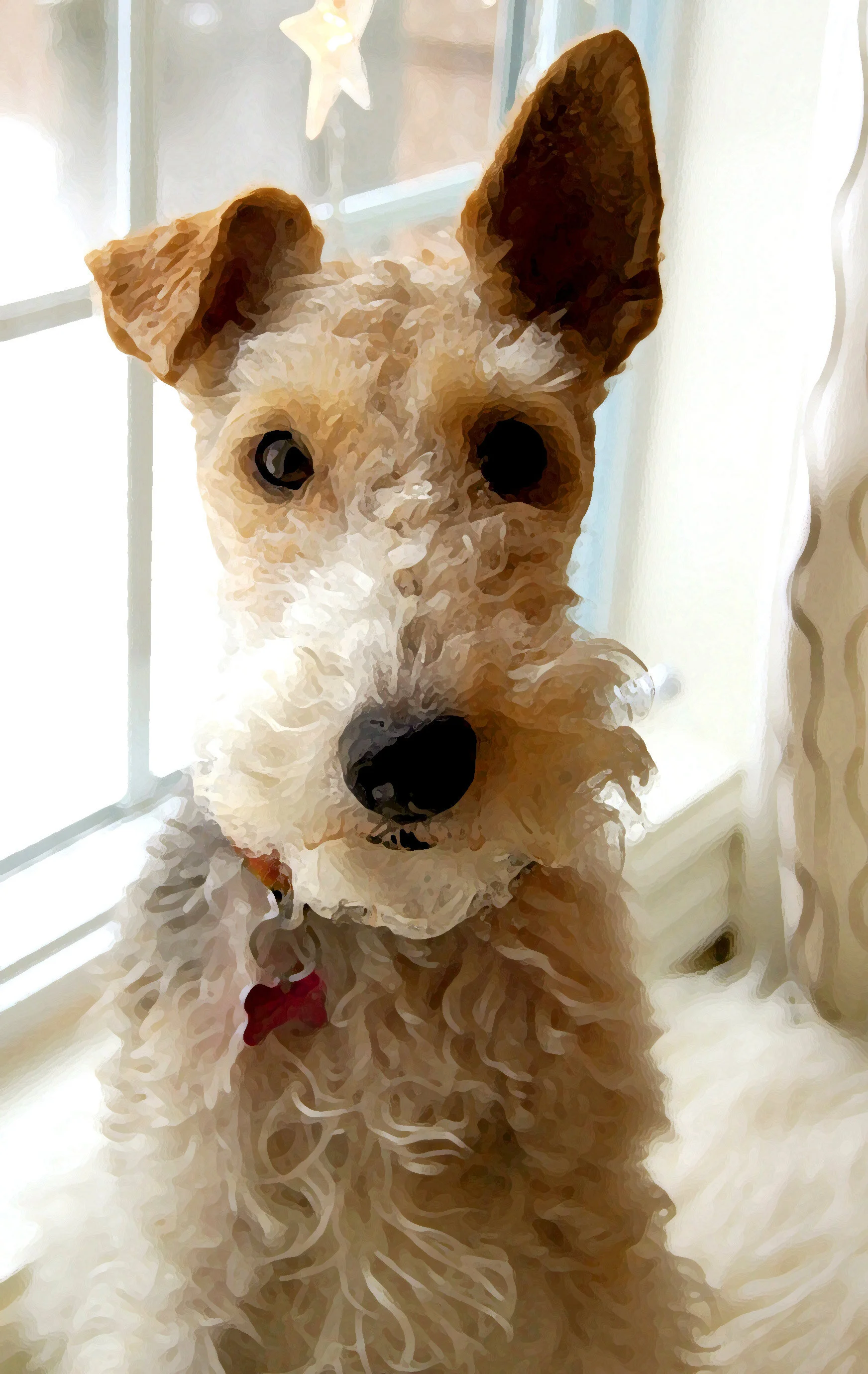 My furry studio assistant + our resident princess, surfer girl, and drama queen, Peanut. A wire-haired fox terrier we adopted in 2010. She vibrates with adrenaline, is very high maintenance, and has so. much. personality.